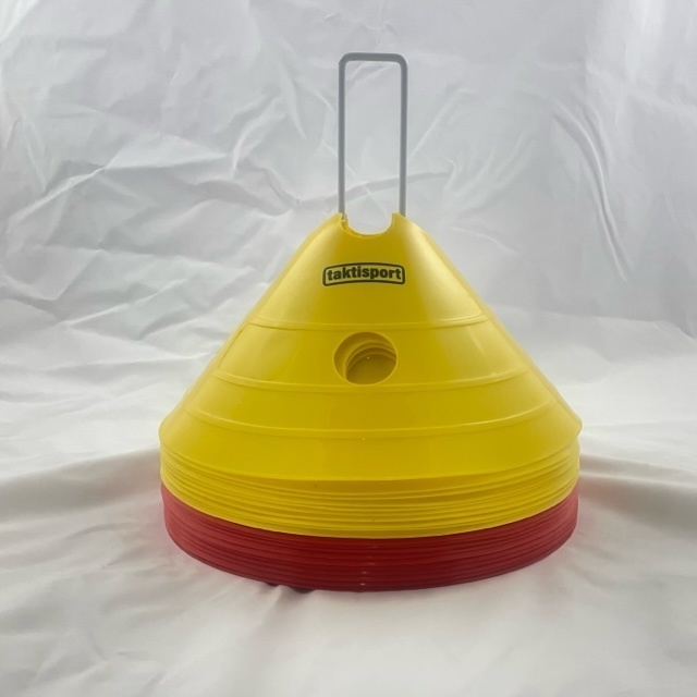 Deze hoge markeringshoedjes zijn speciaal ontworpen voor intensieve training en veelzijdig gebruik. Elk hoedje is 30 cm breed en 15 cm hoog, waardoor ze goed zichtbaar zijn op elk type veld. De set bestaat uit 10 gele en 10 oranje hoedjes, geleverd met een praktische draagbeugel. Het stevige ontwerp maakt ze bestand tegen intensief gebruik op gras, kunstgras of indoorvloeren. De hoedjes zijn stabiel, robuust en blijven goed liggen tijdens elke trainingsvorm.