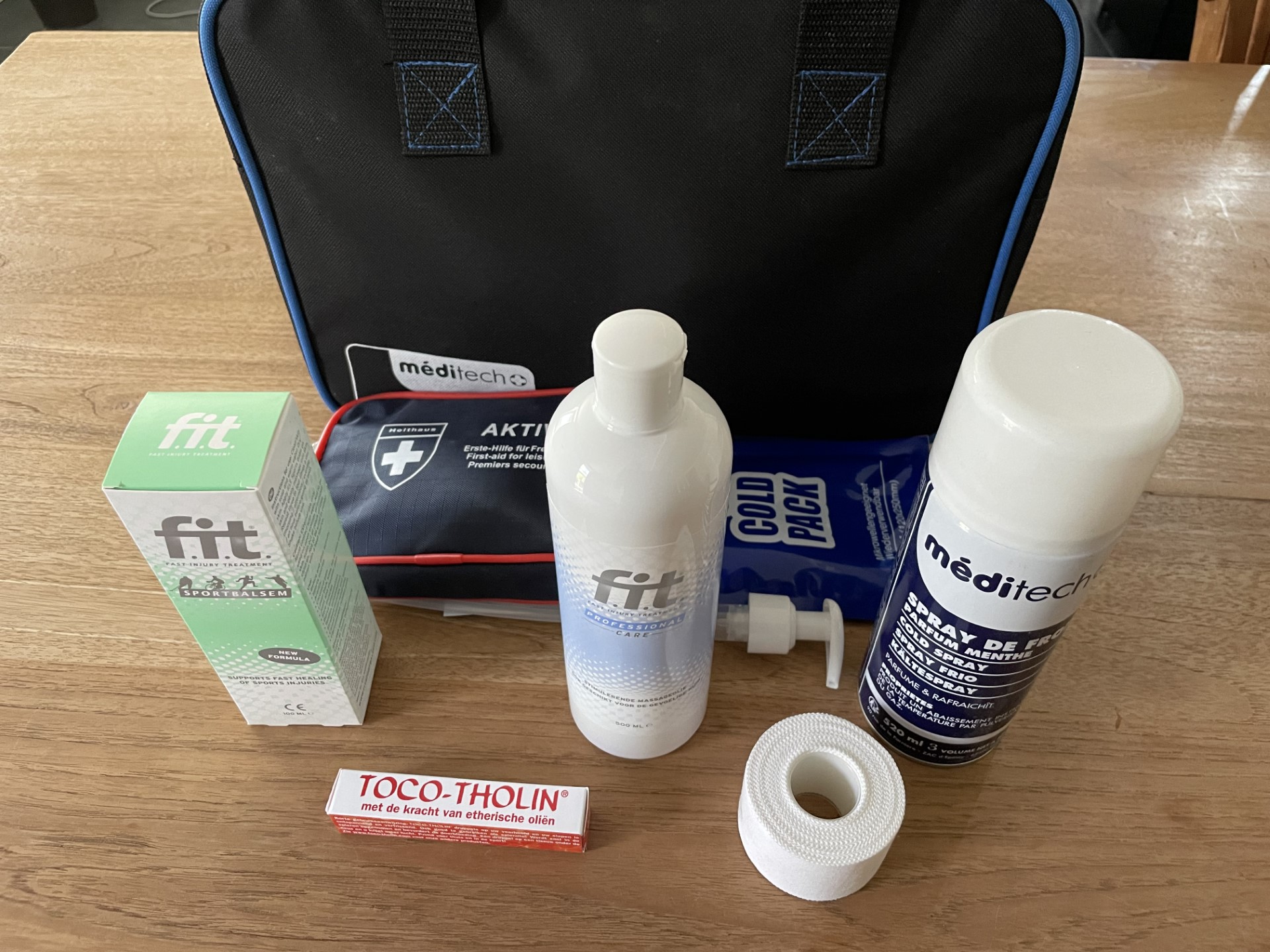 Zeer praktisch samengestelde handzame verzorgingstas met inhoud voor direct gebruik tijdens voetbal wedstrijden. Veruit de meeste voetbalteams hebben niet de luxe (meer) dat er een verzorger, masseur of fysio aanwezig is voor, tijdens of na de wedstrijden terwijl spelers en directe begeleiding wel grote behoefte hebben aan verzorging en verzorgingsmateriaal. Daarom hebben we deze speciale zeer betaalbare verzorgingstas met inhoud voor u samengesteld